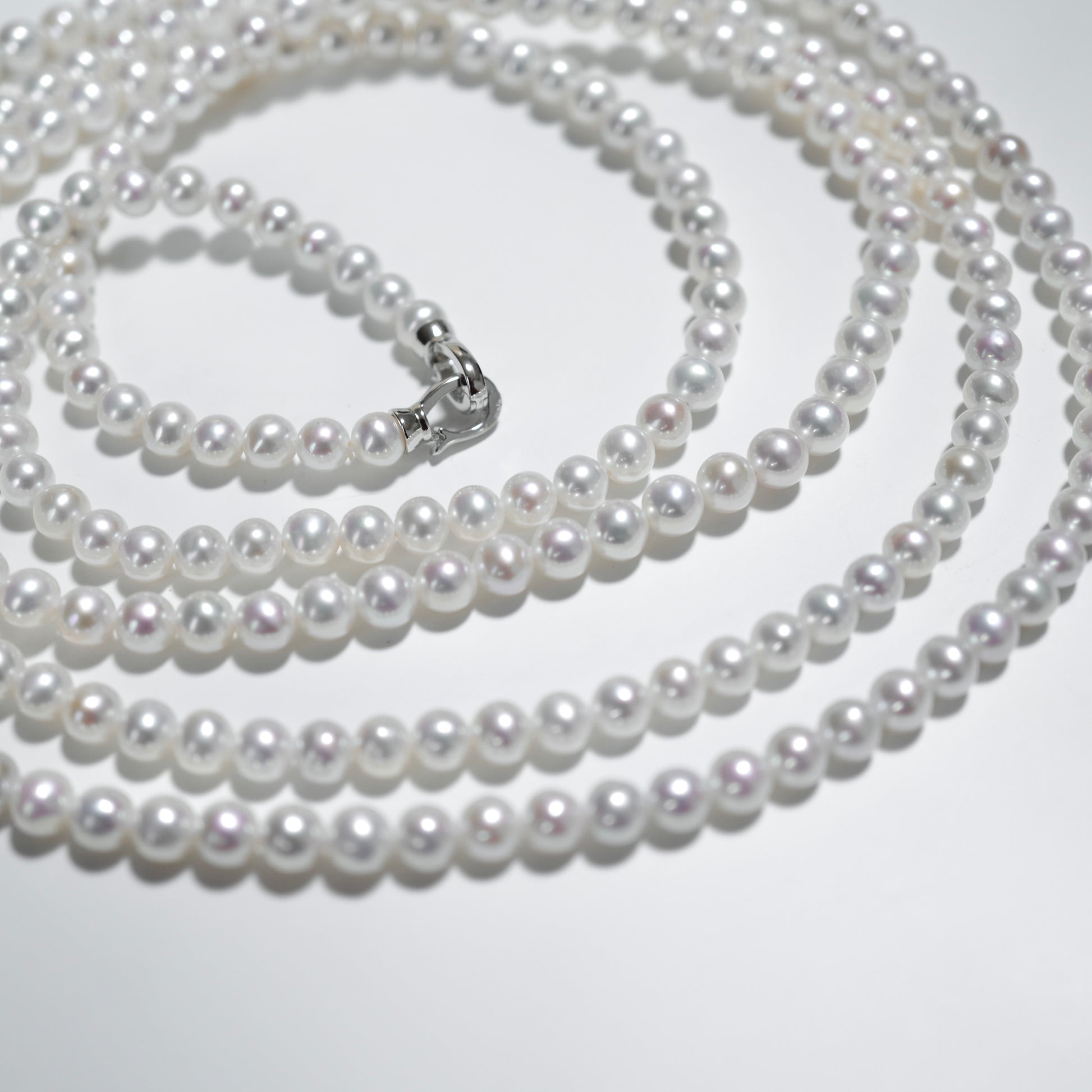普段のカジュアルスタイルから、特別なセレモニーまで、装いをワンランクアップさせる本真珠のベビーパールロングネックレスです。