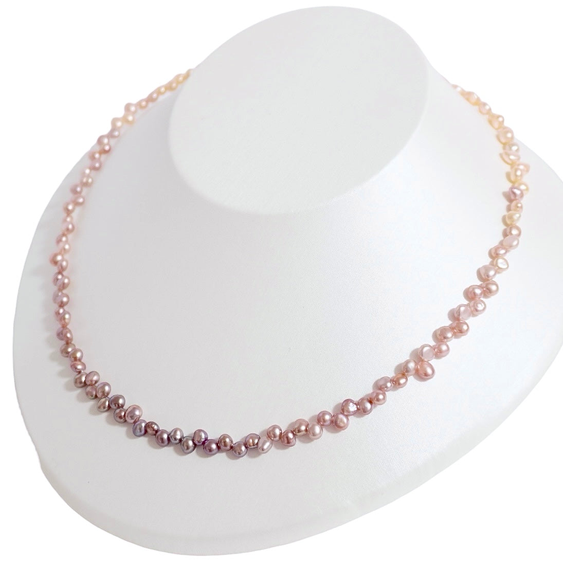 4-4.5mmのバロックパールを、一粒ずつ丁寧に編み合わせて仕上げた特別な一本。