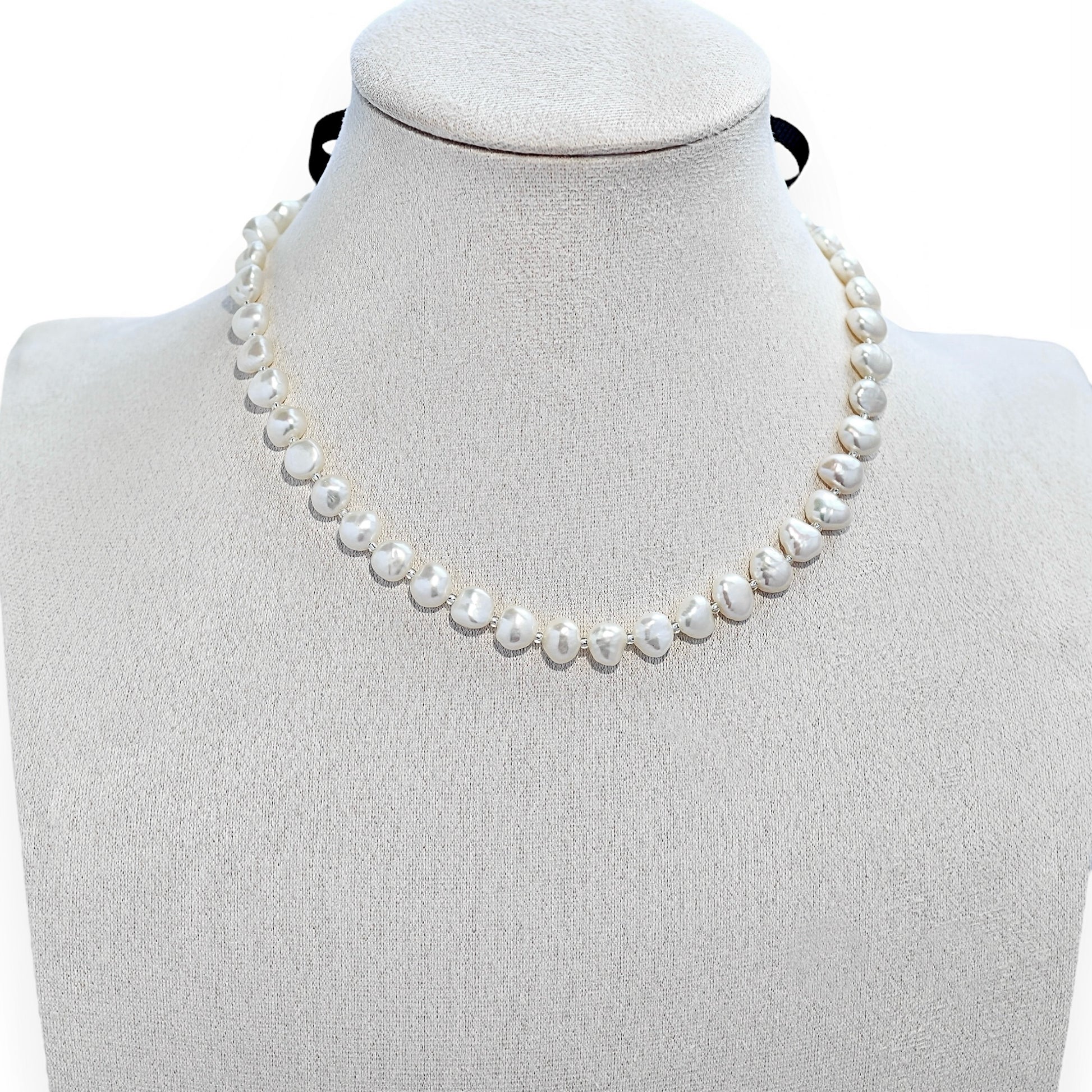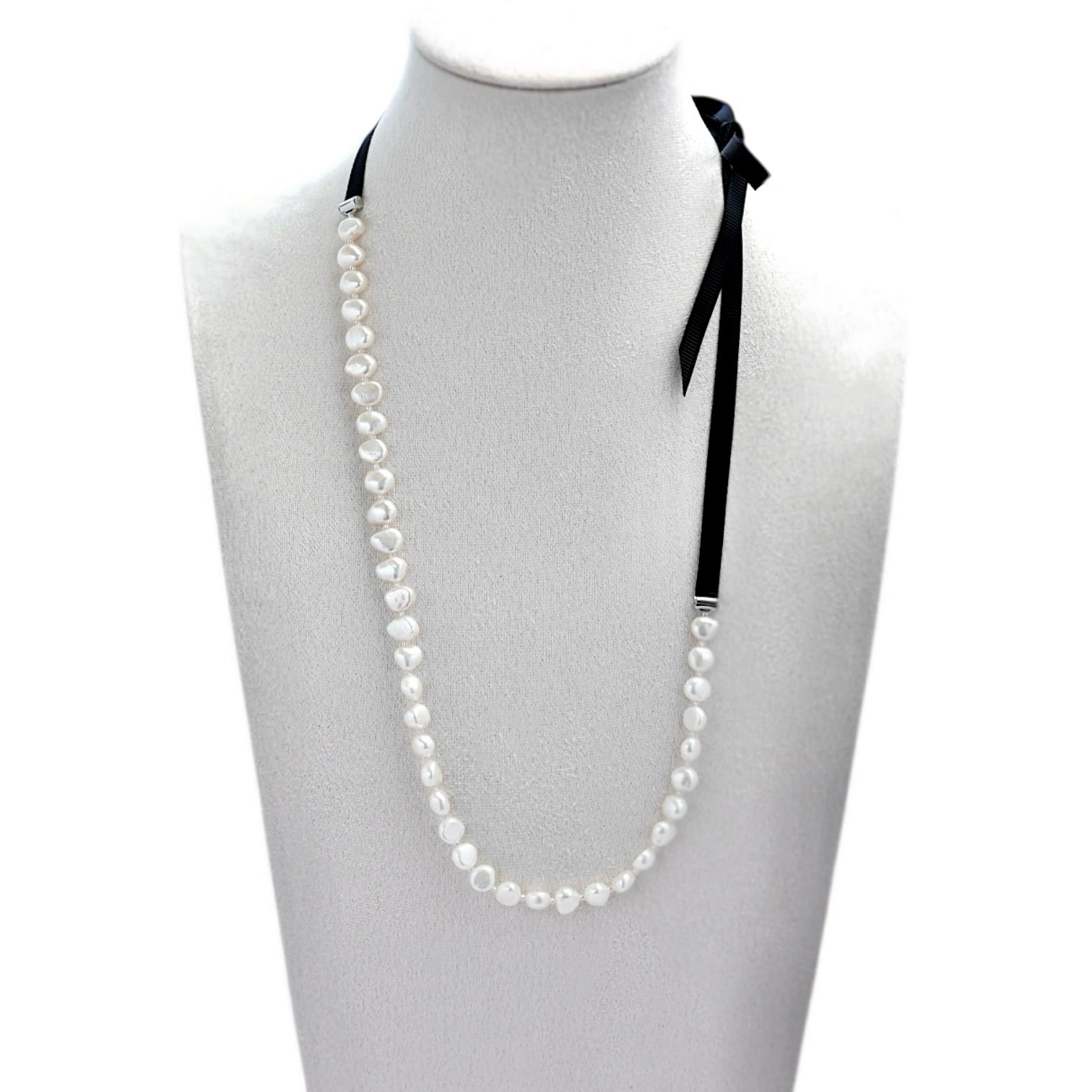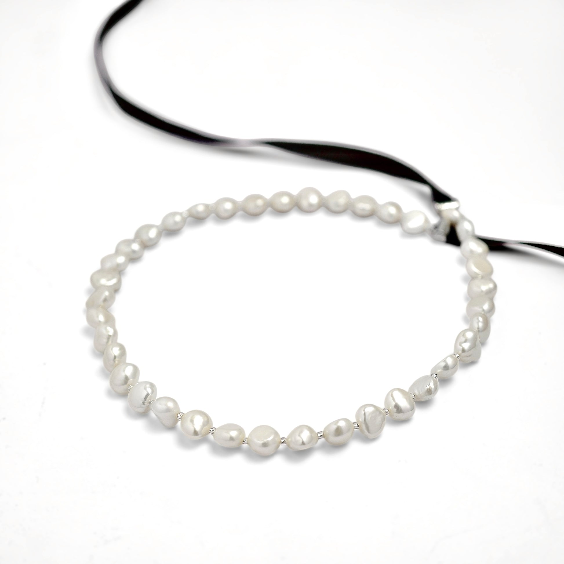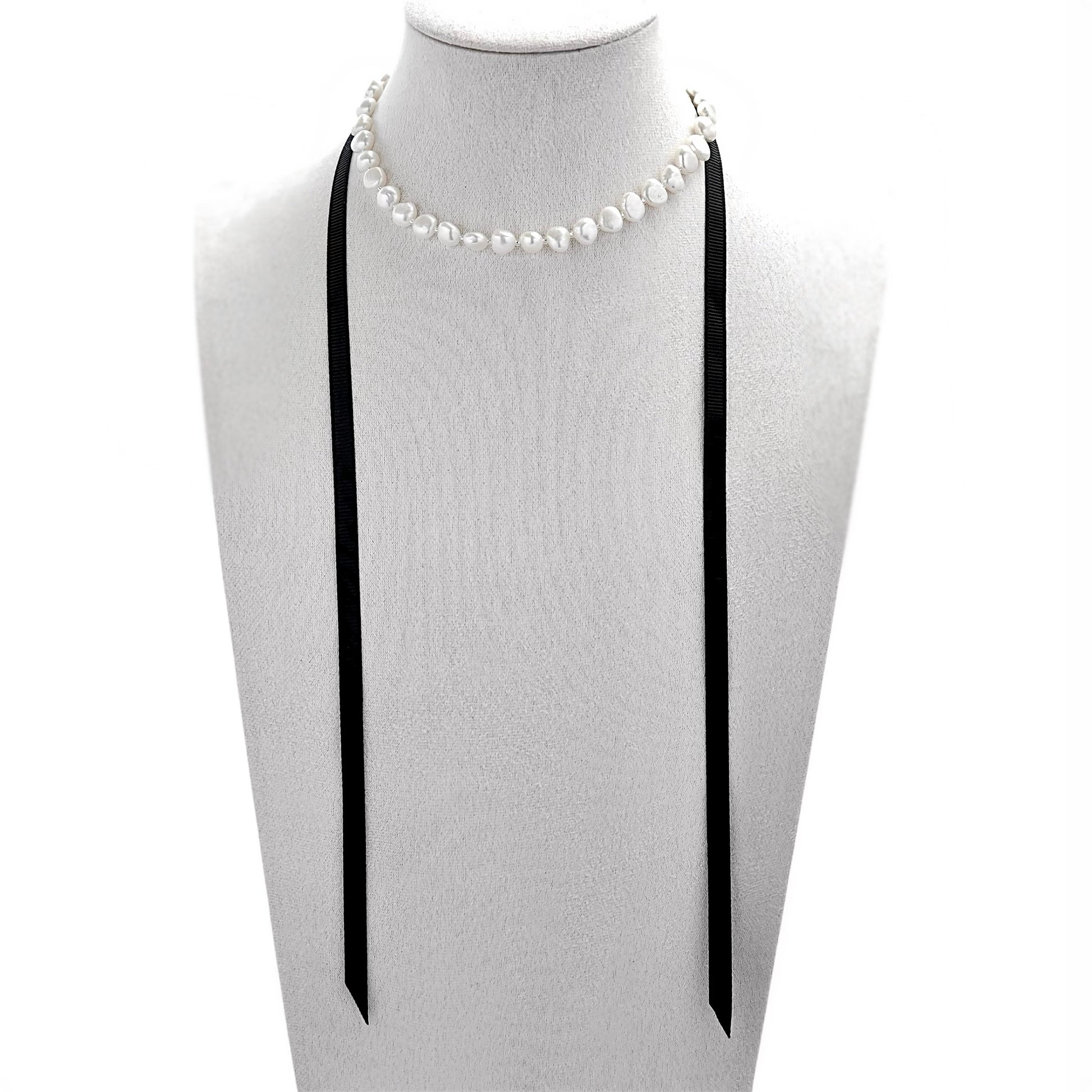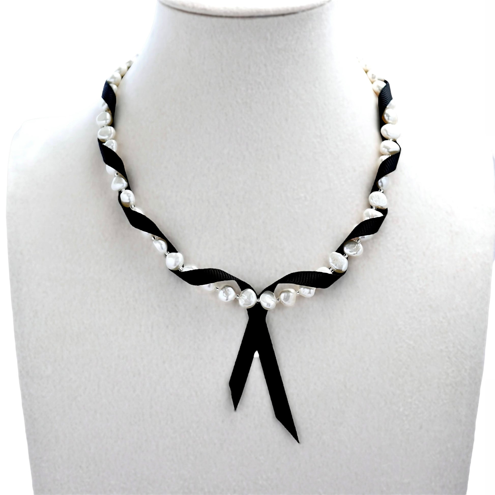 バロック淡水パールとブラックリボンを組み合わせたチョーカーネックレスです。