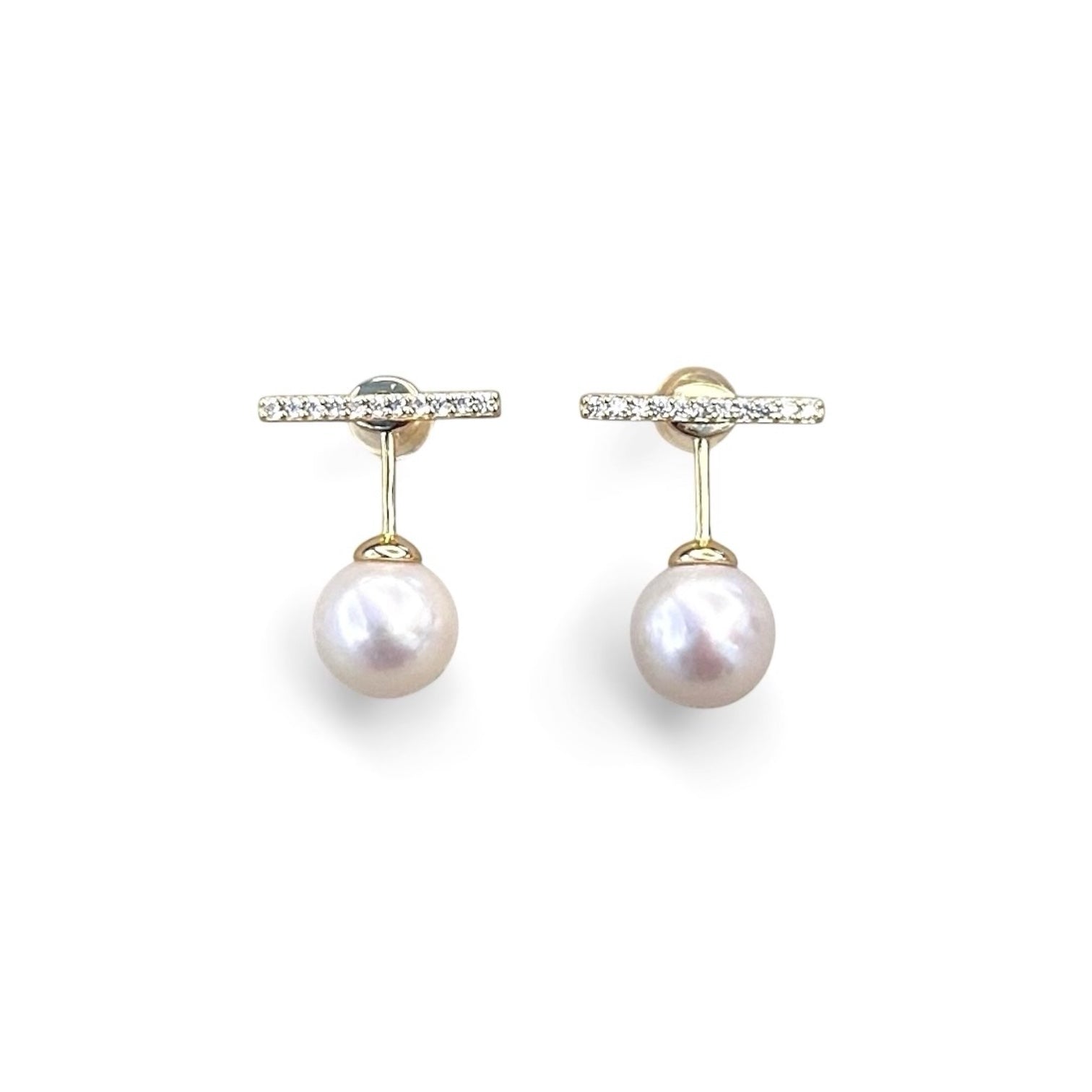 パールの自然な光沢と柔らかな輝きが、どんなシーンにも品のある華やかさを添えます。また、ジルコニアの繊細な輝きが魅力の華奢なバーデザインがピアス全体にアクセントを加え、シンプルながらも程よい存在感を放ちます。